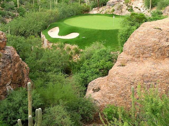 As the Mountain course climbs up the Santa Catalina foothills, the Canyon course takes a different route. The front nine winds down through the inspiring beauty of Esperrero Canyon. Visit during the monsoon season and you are sure to see rushing water through the desert washes. As you turn to the back nine, look for the iconic Whaleback Rock. With generous fairways and picturesque views throughout, you are sure to enjoy this desert gem!